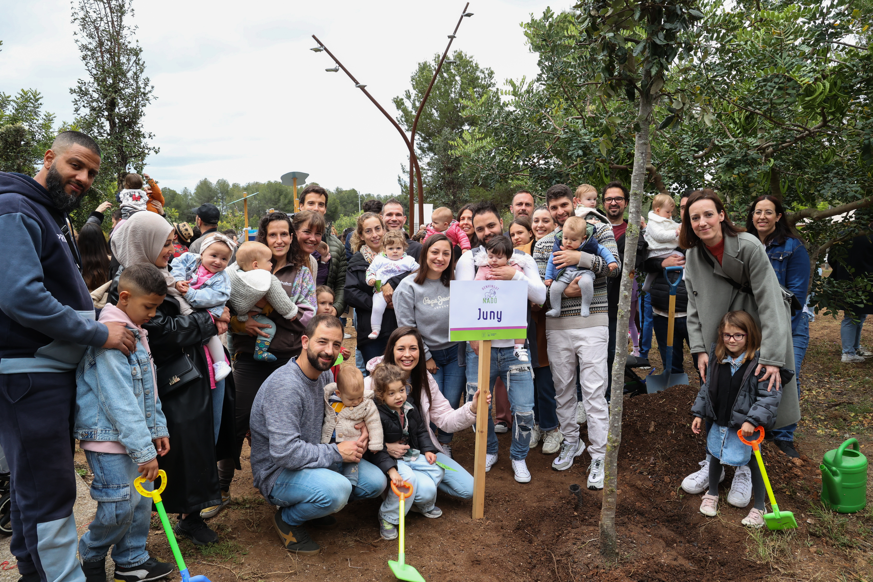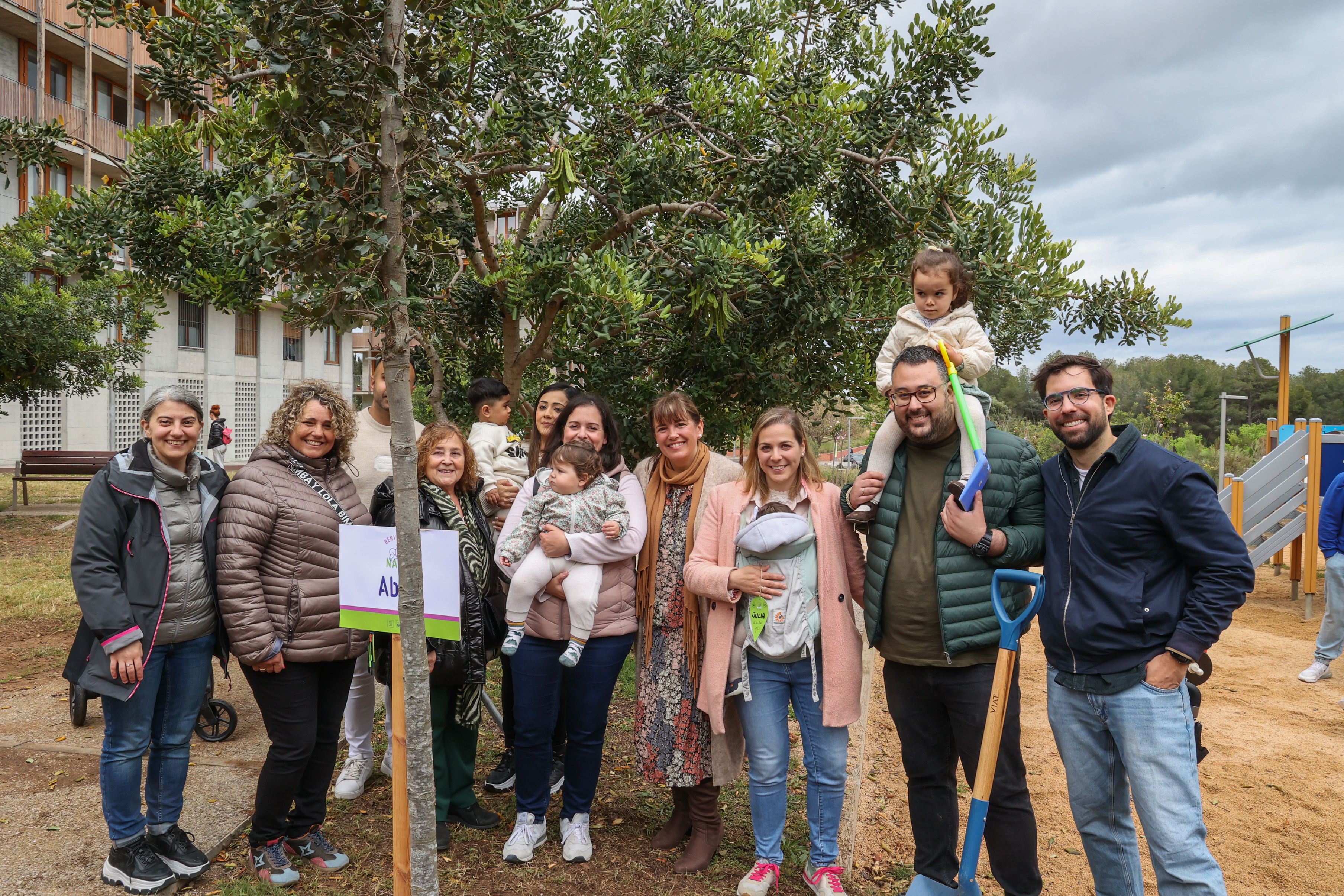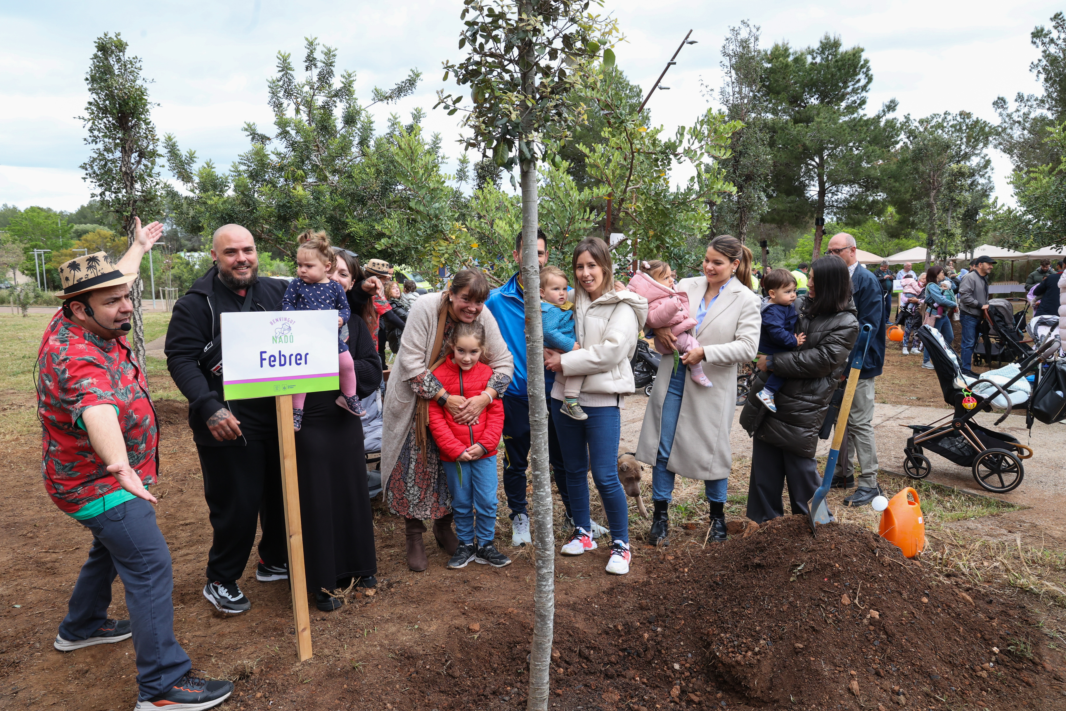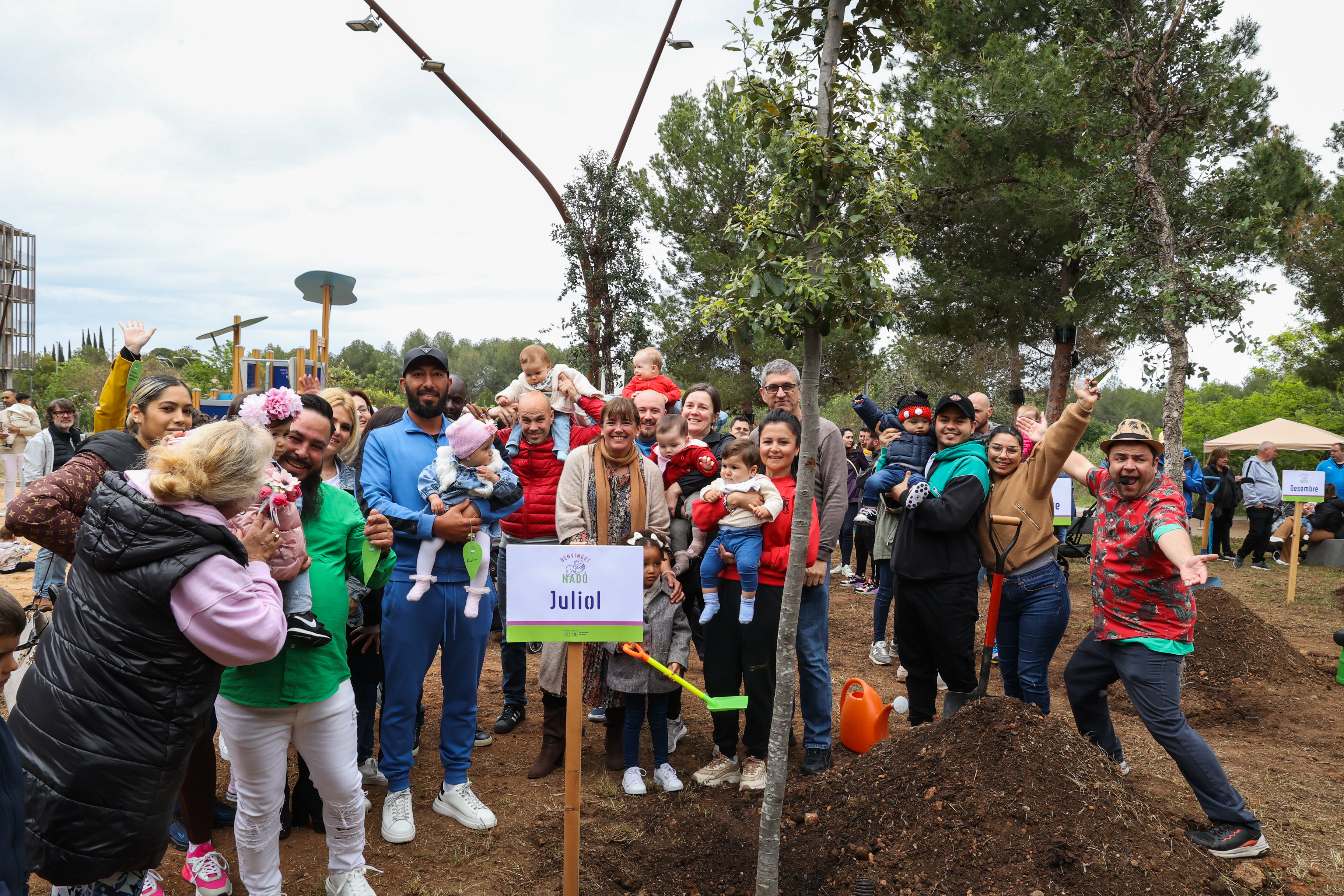 Els nens i nenes acompanyats de les seves famílies han ajudat a plantar un dels 12 arbres, han penjat un desig i s'han fet una fotografia de record amb l'exemplar corresponent amb la seva data de naixement.