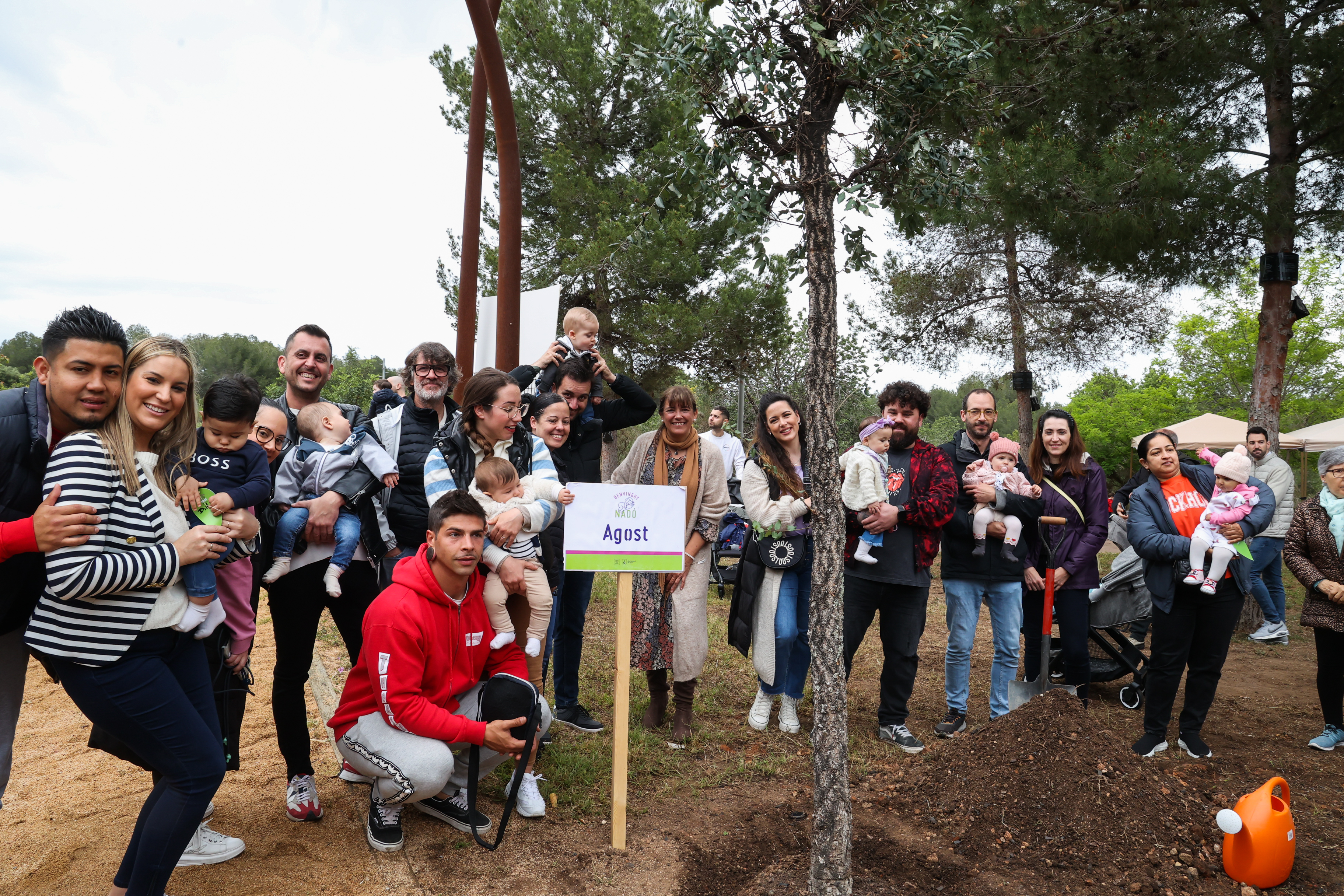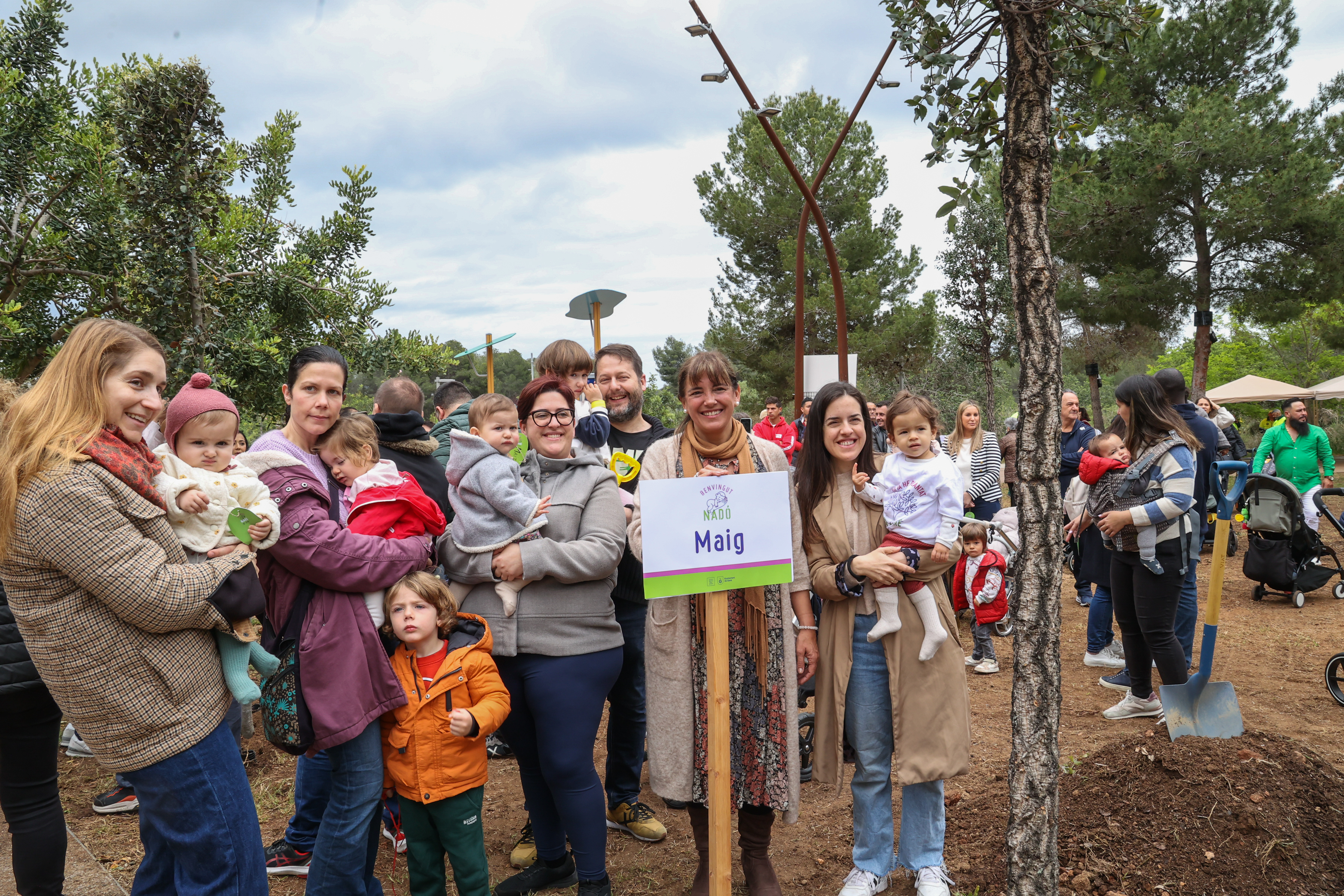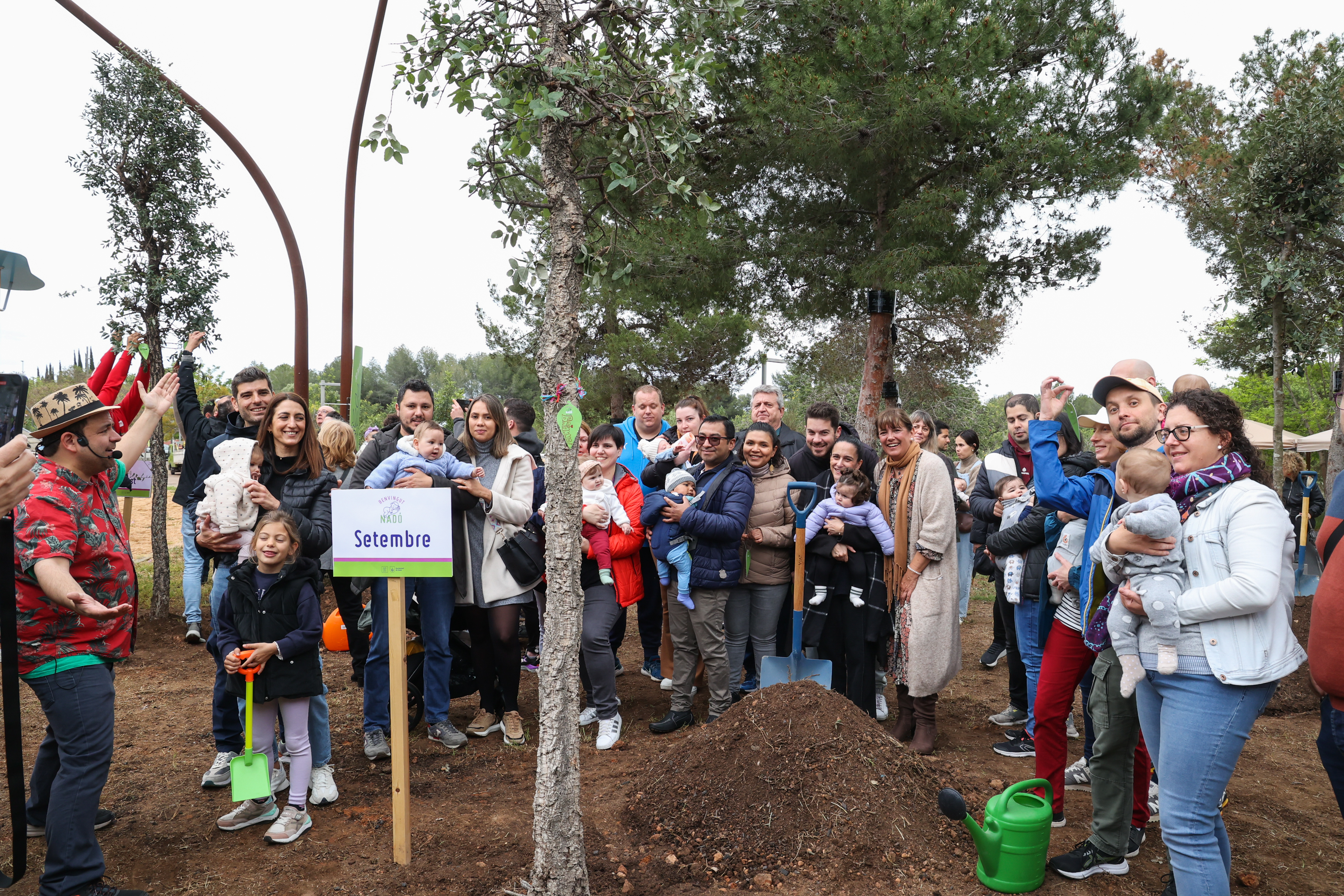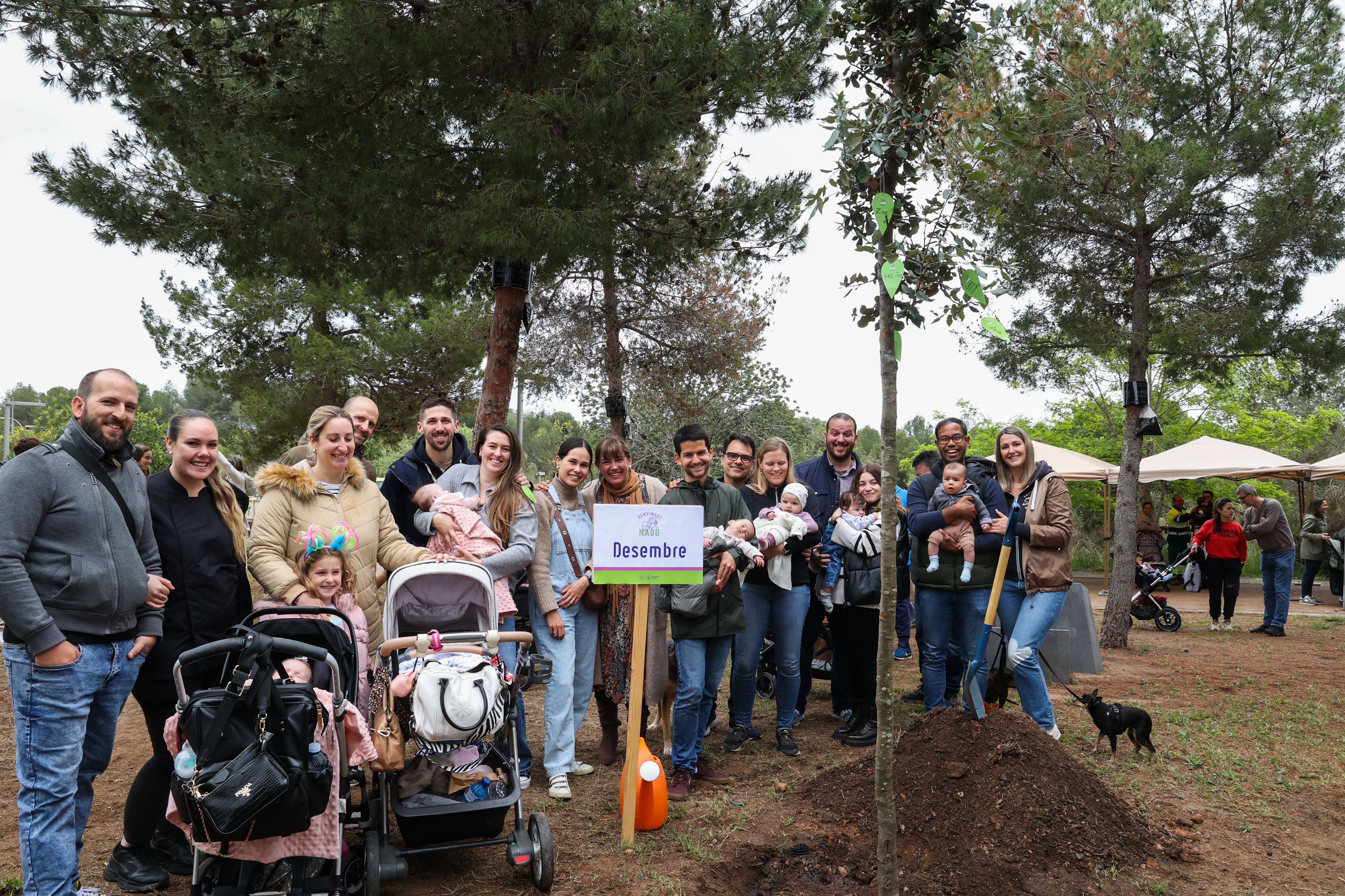 Els nens i nenes acompanyats de les seves famílies han ajudat a plantar un dels 12 arbres, han penjat un desig i s'han fet una fotografia de record amb l'exemplar corresponent amb la seva data de naixement.