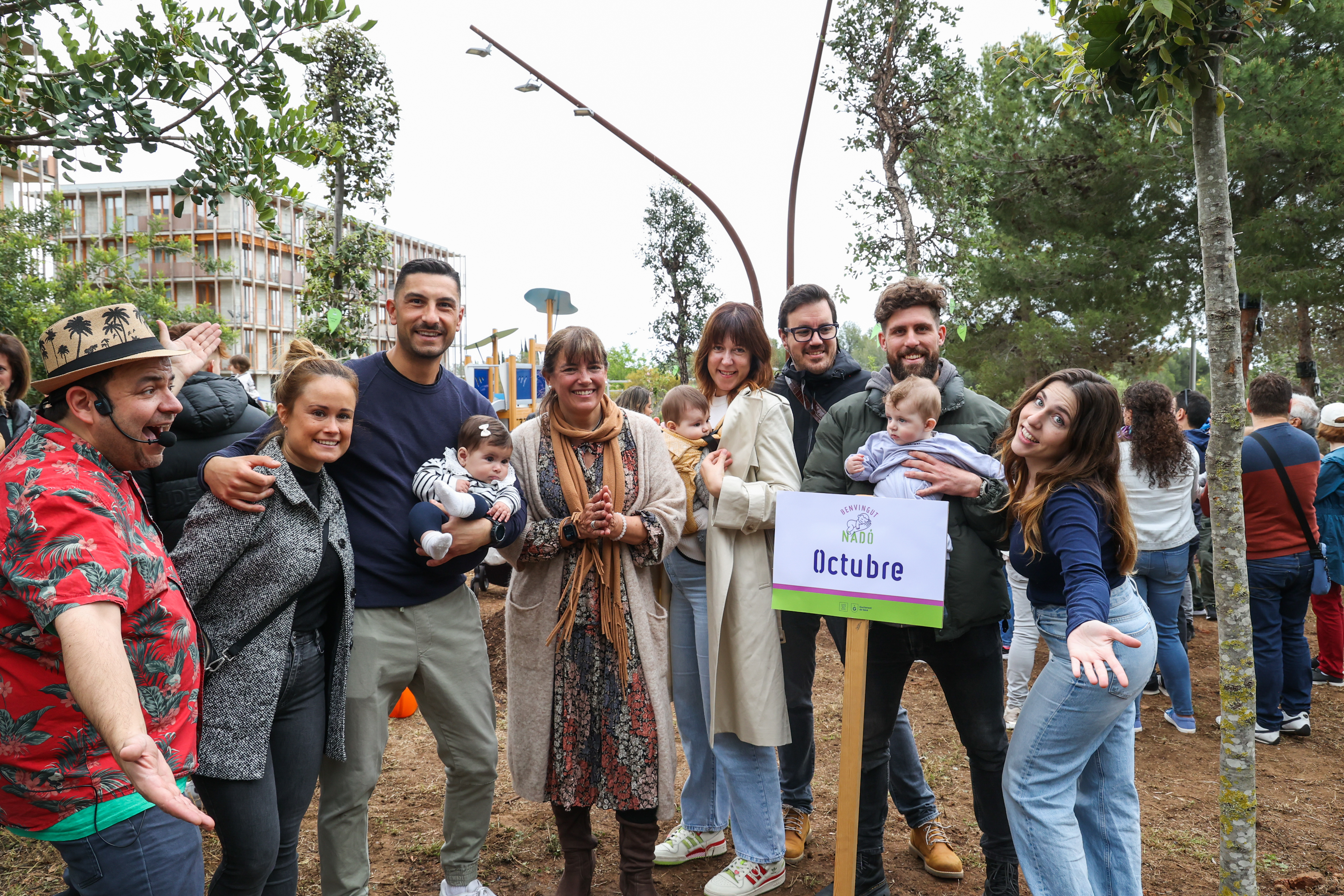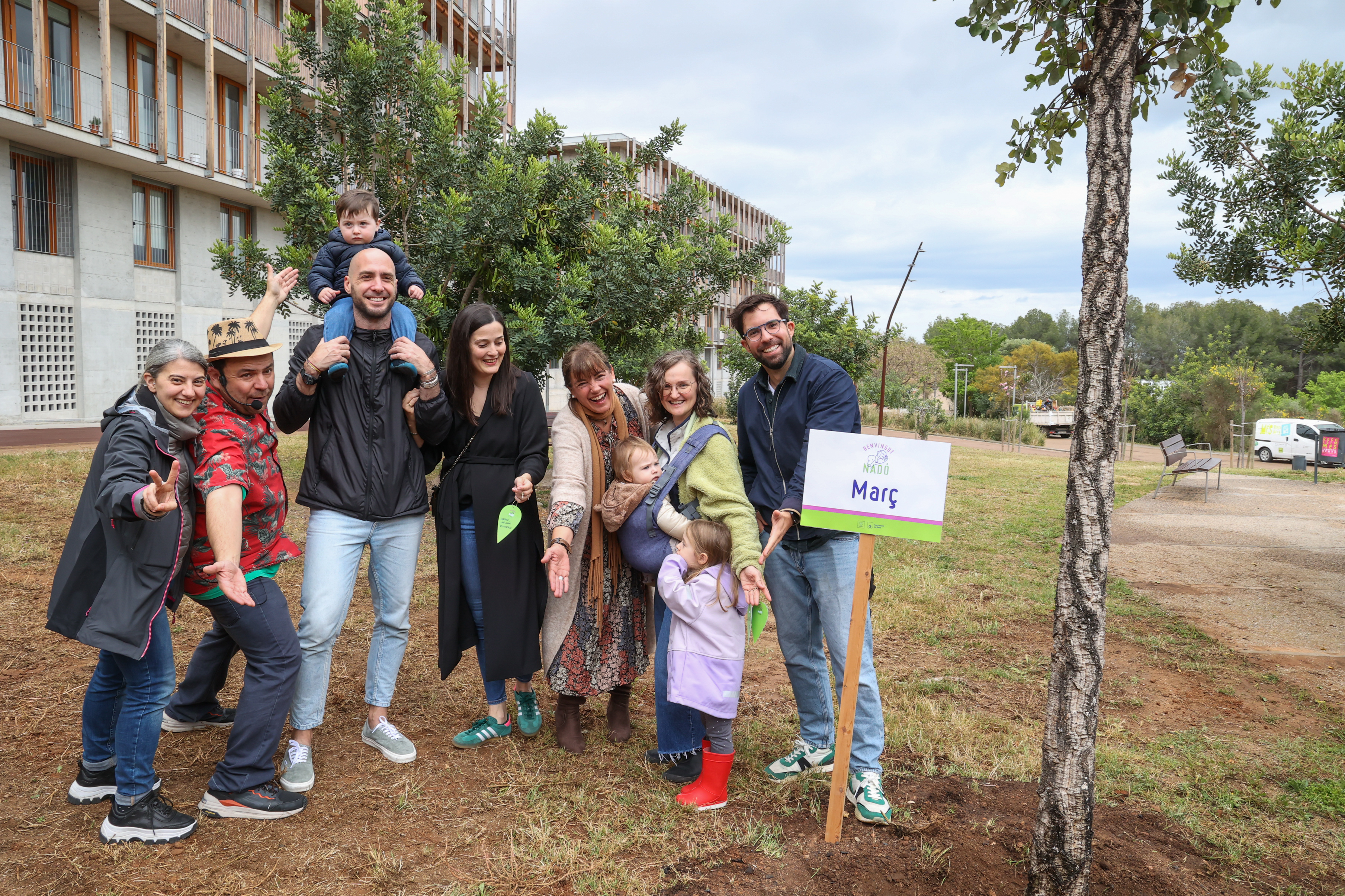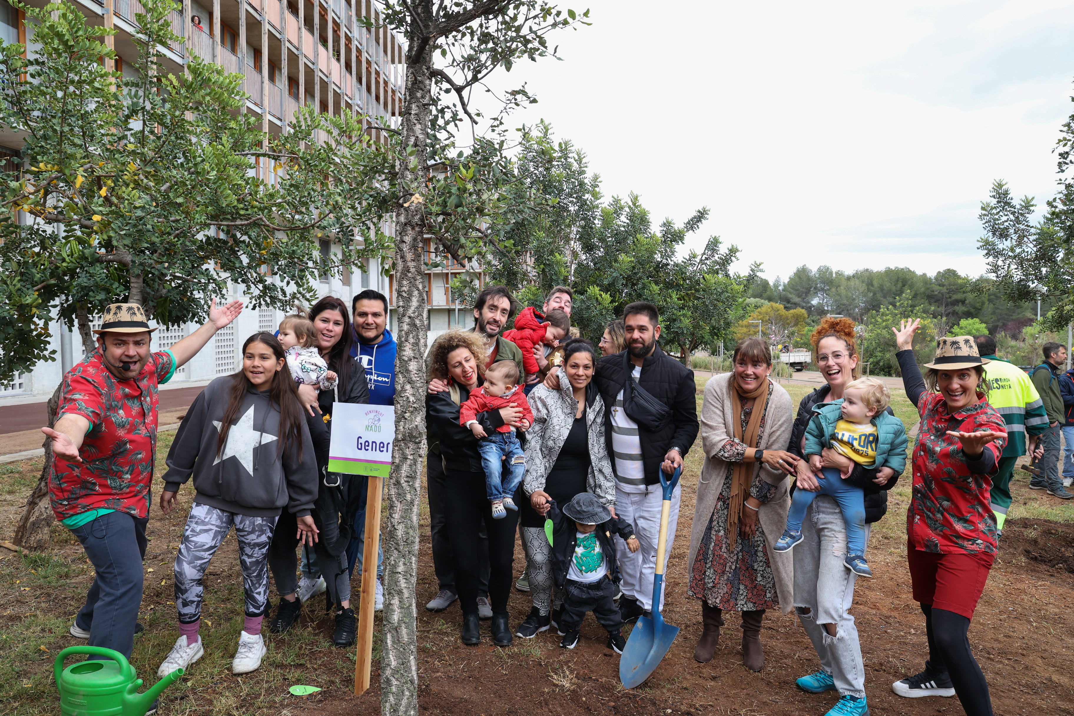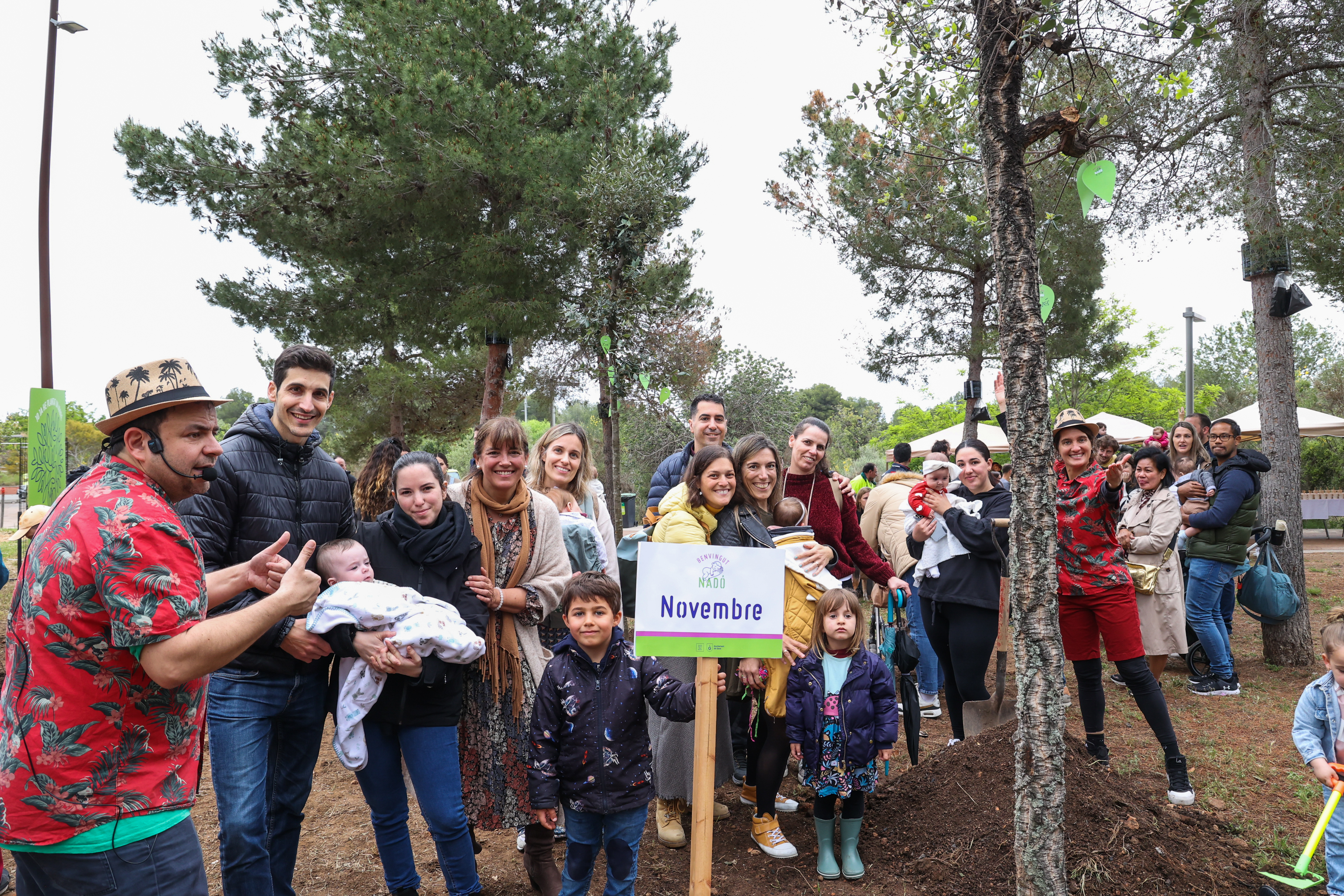Els nens i nenes acompanyats de les seves famílies han ajudat a plantar un dels 12 arbres, han penjat un desig i s'han fet una fotografia de record amb l'exemplar corresponent amb la seva data de naixement.